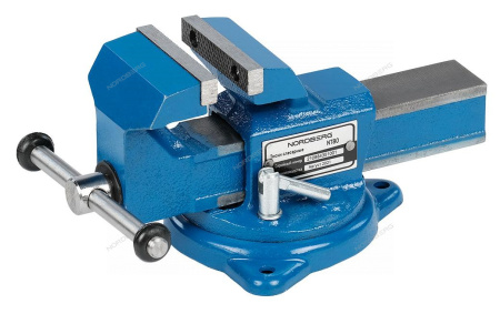 Основание тисков имеет поворотный механизм, благодаря которому корпус тисков можно разворачивать на 360°