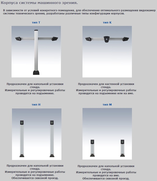 Функционирование приборов основано на измерении угловых параметров, определяющих положение осей и колес автомобиля с помощью видеокамер и плоских мишеней с градиентным рисунком.