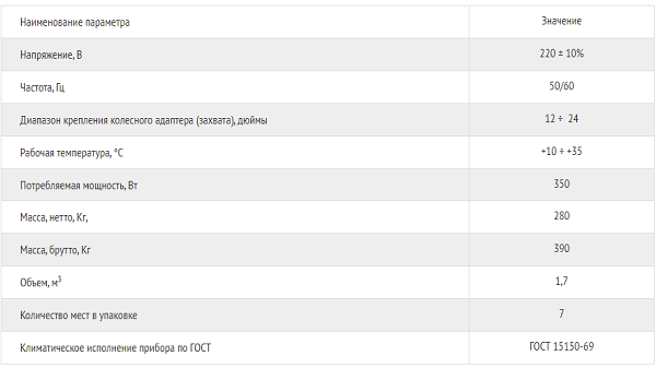 Технические характеристики стенда Техно Вектор 7